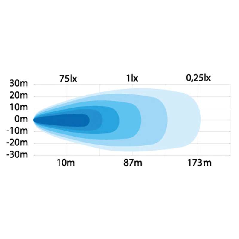 Dugi Doseg: Snažni Flood Beam snop osvjetljava radni prostor do 86 metara (pri 1 lux), pružajući Vam potpunu kontrolu nad strojem.